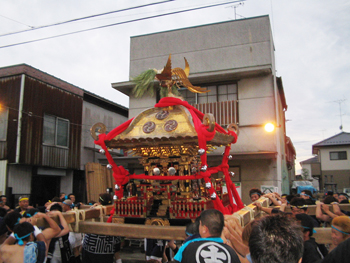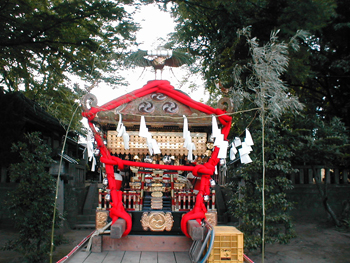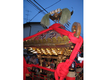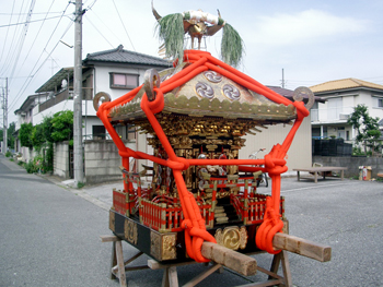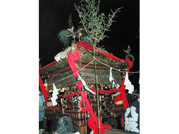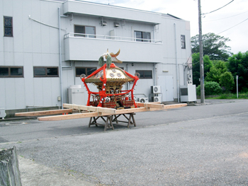 ■毎年七月七日に宮出しの儀式が行われます。御神体が大神輿(天王様)の中へ納められ 、引車にて各町内を回ります。